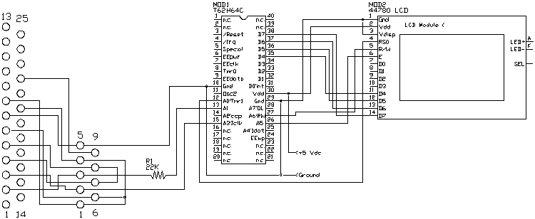 The demonstration program is as simple as the circuit. The program initializes the LCD display then displays 20 characters it receives with the rs_receive() function. The rs_send() function is used by the rs_string() function to send a message to the PC saying, "send a block beginning with 'A'". At this point, the program uses rs_recblock() to get a block of 10 characters which are prefaced with the letter 'A'. When all 10 characters are received, the string is displayed on the LCD. The process is repeated indefinitely
