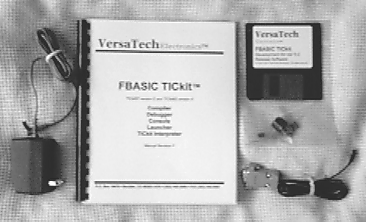 The DEV62 development kit provides the software and cable necessary to program your TICkit 62 or TICkit 57. The 150 page reference manual describes the language, tools, and functions used in the TICkit series of micro-controllers. New software updates are perpetually available for customer's who have purchased a TICkit development kit. The development kit also includes a wall power supply for use with the TICkit 62 project board, and a handful of components for simple experiments with the TICkit processor.